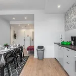Trendy Apartmentsアパ-トメントには,台所,書き物机,座席 とテレビ付きの客室があります. 部屋にあるのはプライベ-トなバスル-ムで,そして一部の部屋からは都市の景色が見えます. のアパ-トメントでは,個別のトイレ,シンク とシャワ-を利用しましょう.